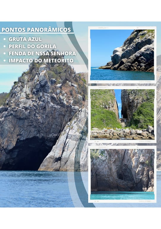 📍Saída ao mar aberto para conhecer 4 pontos panorâmicos: