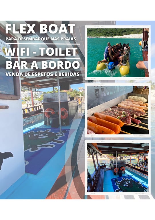 Trabalhamos com capacidade reduzida, temos colchonetes em todos os bancos para o maior conforto dos clientes, temos coletes salvavidas para todos os passageiros, banheiro a bordo, bote de apoio com um tripulação altamente capacitada para realizar o embarque e desembarque da praia, e cortesía de água mineral. Material recreativo incluso: tapete flutuante, deck Summer, camas boias e macarrão.